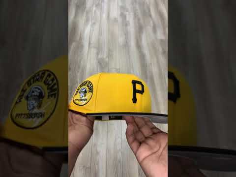 Pittsburgh Pirates 1974 All Star Game New Era 59Fifty Fitted Hat is Yellow Black and Grey Under Brim.