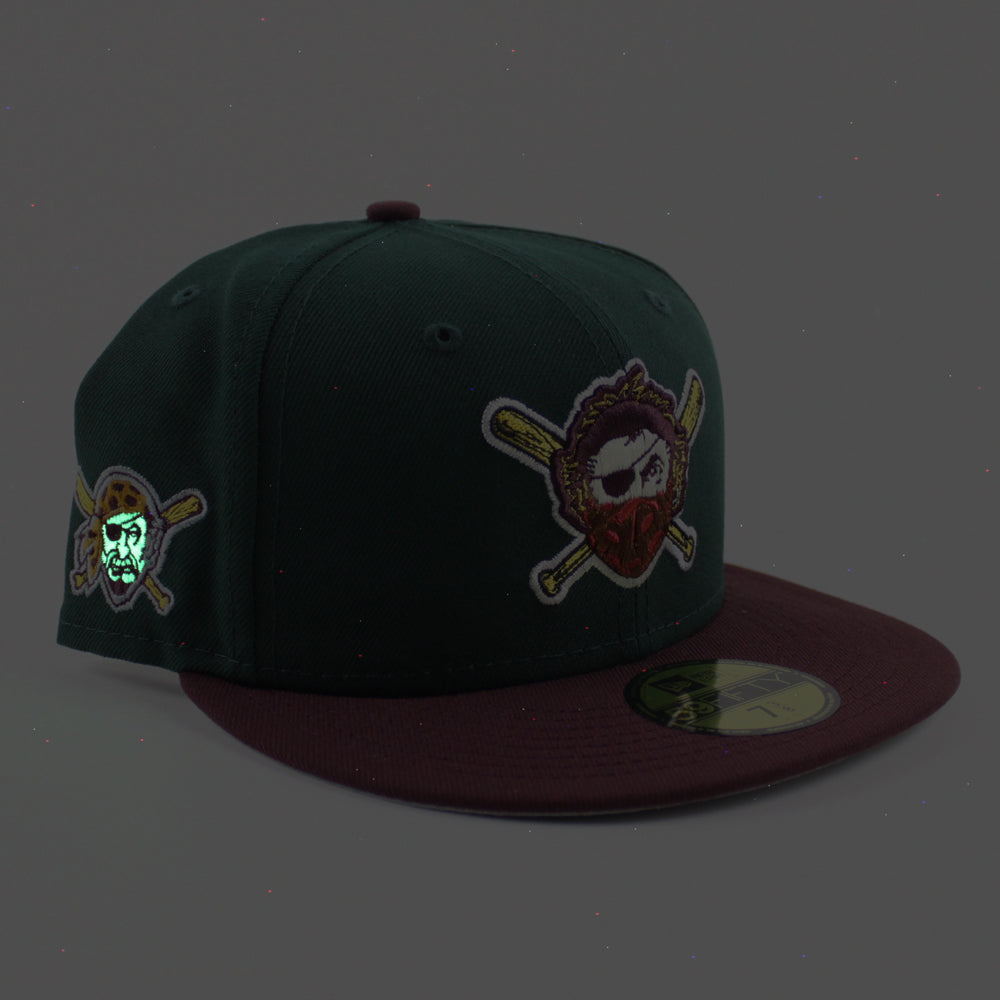 Pittsburgh Pirates Pirates Logo 59Fifty New Era Fitted Cap in Green, Maroon and Gray Under Brim.