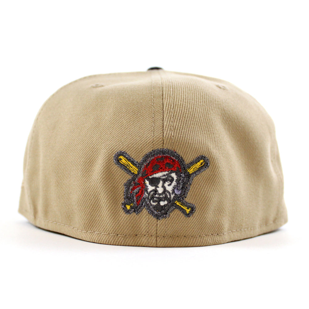 Pittsburgh Pirates Roberto Clemente 59Fifty New Era Fitted Cap in Drip logo, Camel, Navy and Gray Under Brim.