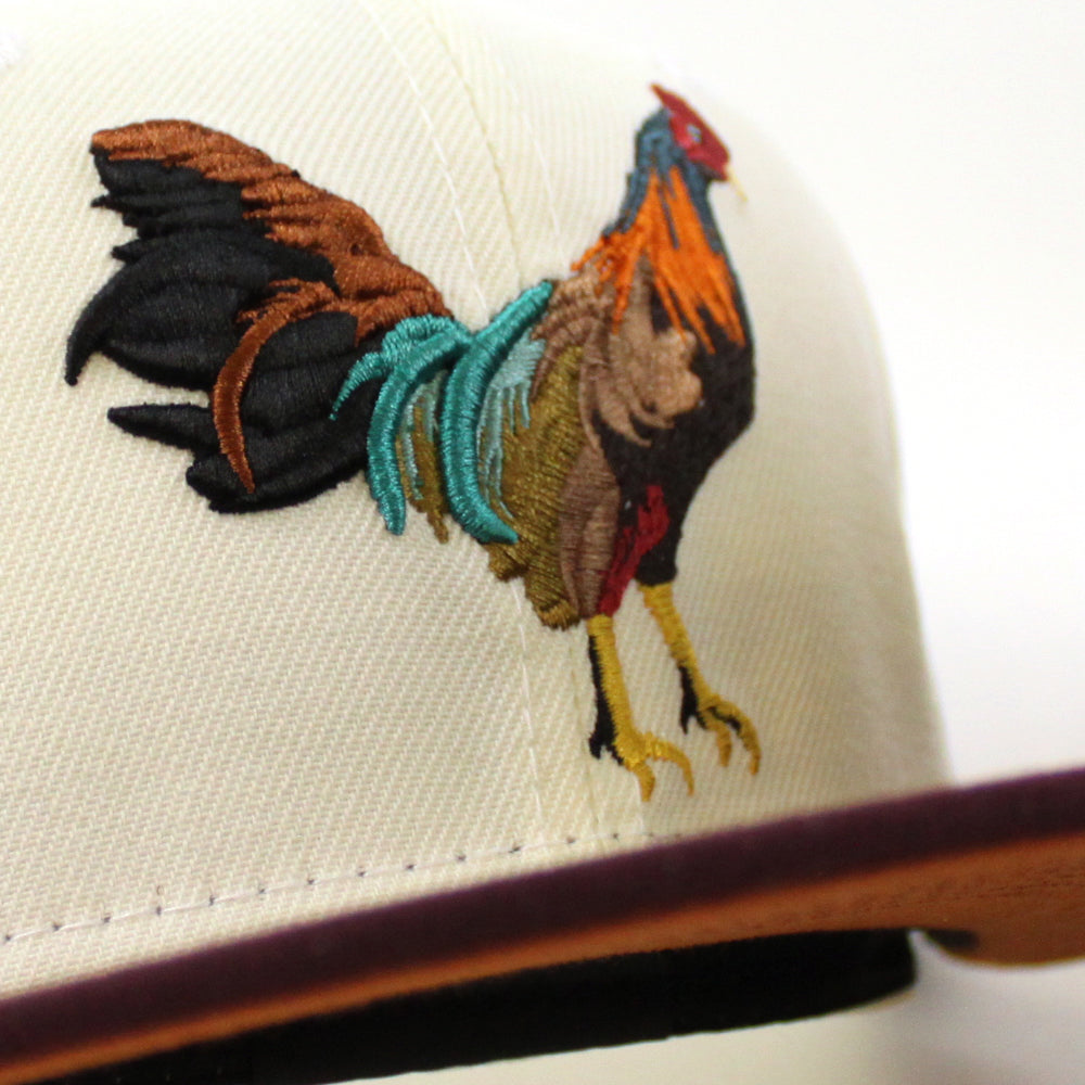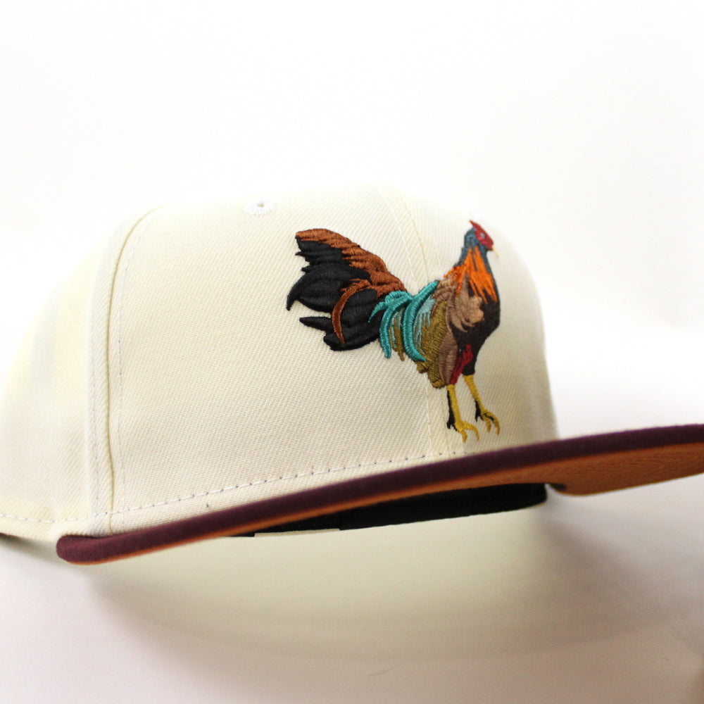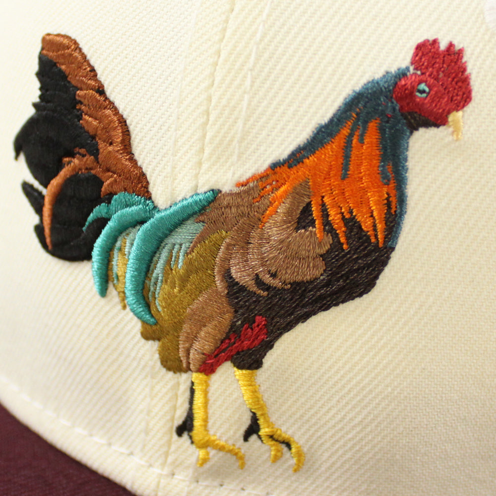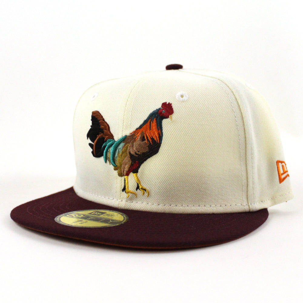 ROOSTER New Era 59Fifty Fitted Hat (CHROME WHITE MAROON RUST Under Brim)