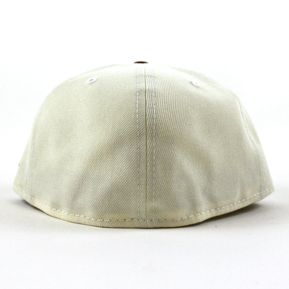 ROOSTER New Era 59Fifty Fitted Cap in Chrome White, Maroon and Rust Under Brim.