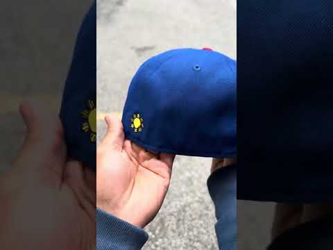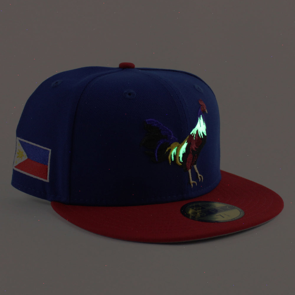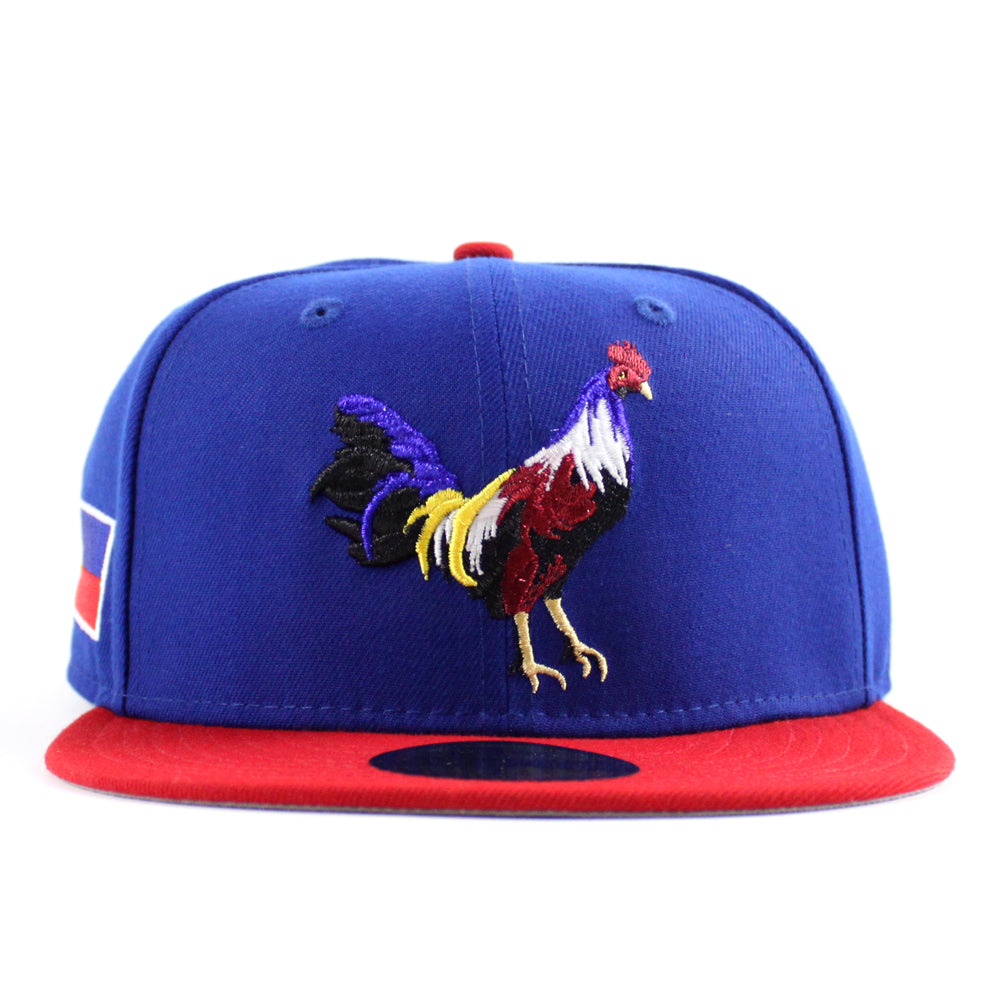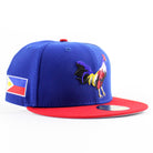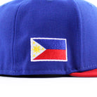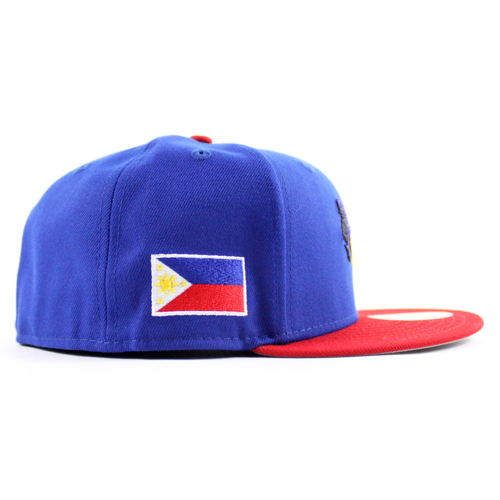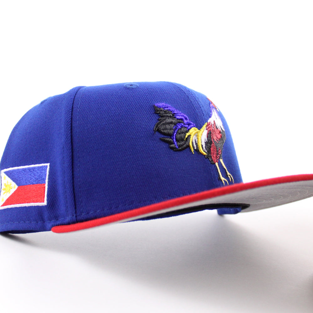 ROOSTER Philippines Flag New Era 59Fifty Fitted Cap in Royal Blue Scarlet Red Gray Under Brim.