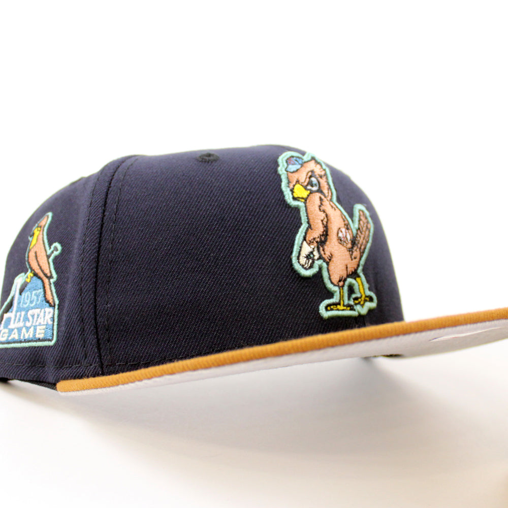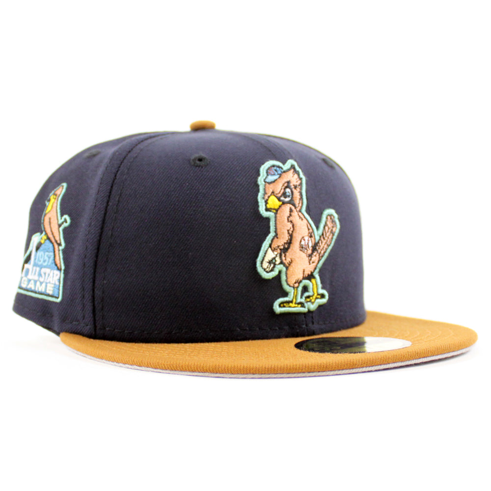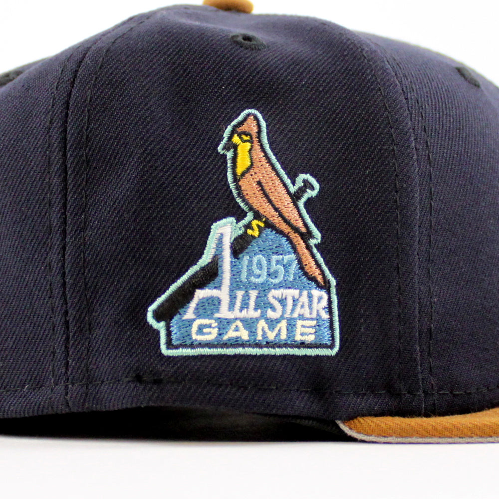 St. Louis Cardinals 1957 All Star Game New Era 59Fifty Fitted Hat in Navy, Toasted and Gray Under Brim. 26
