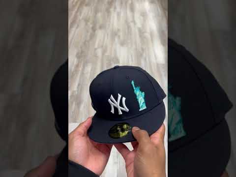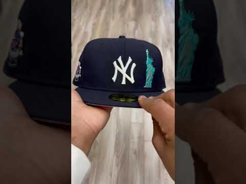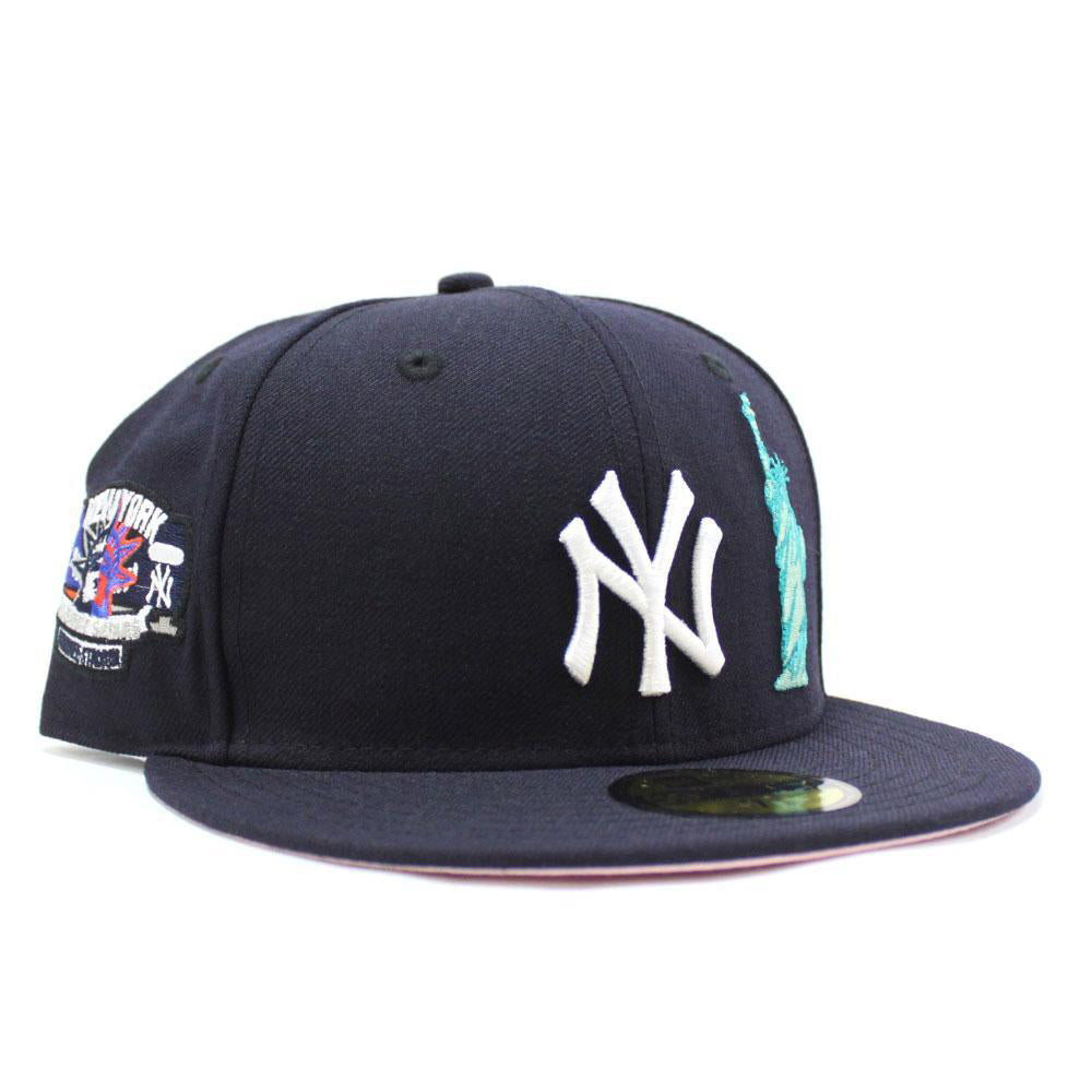 Statue of Liberty New York Yankees Subway Series Yankee Stadium New Era 59Fifty Fitted Hat in Navy & Pink Under Brim.