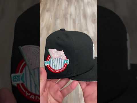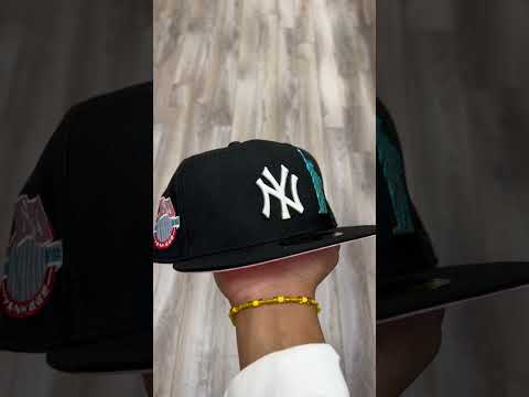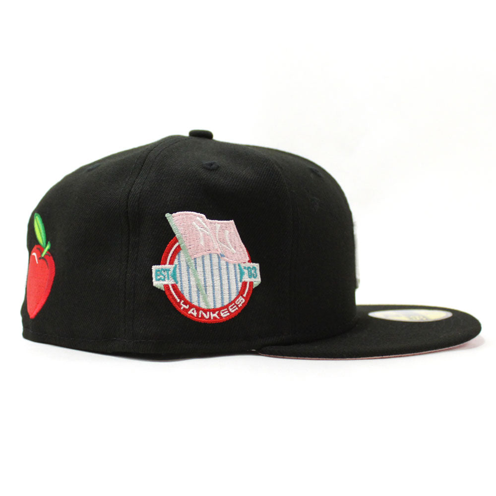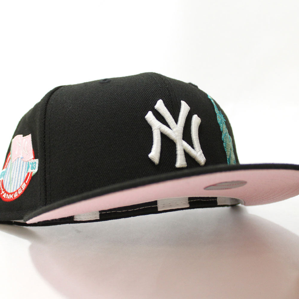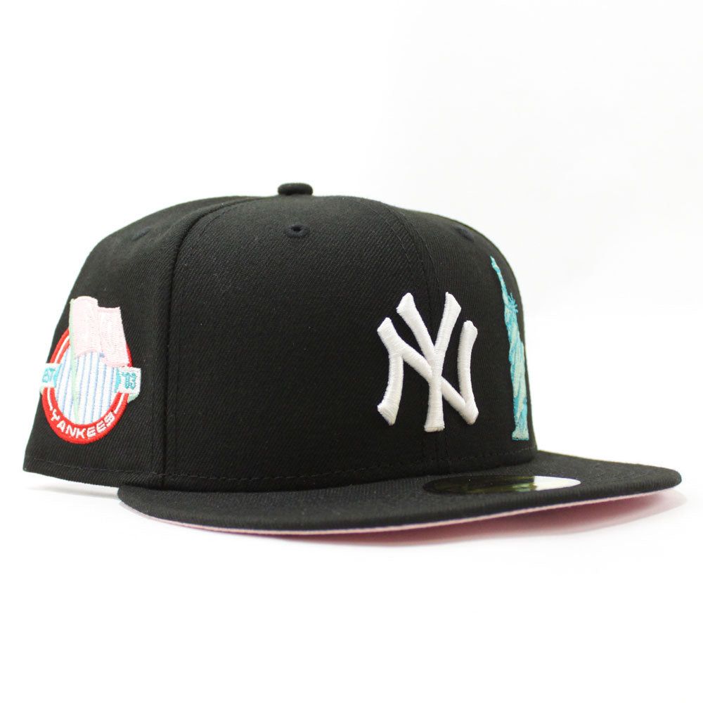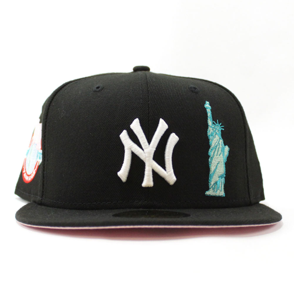 Statue of Liberty New York Yankees Team Flag Patch New Era 59Fifty Fitted Hat in BLACK & Pink Under Brim.