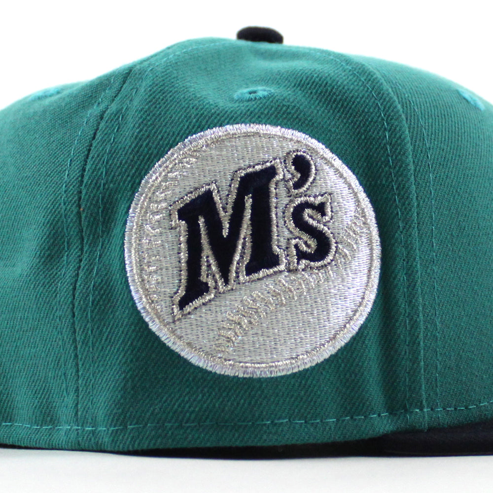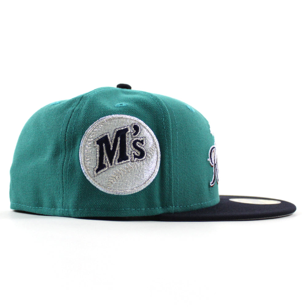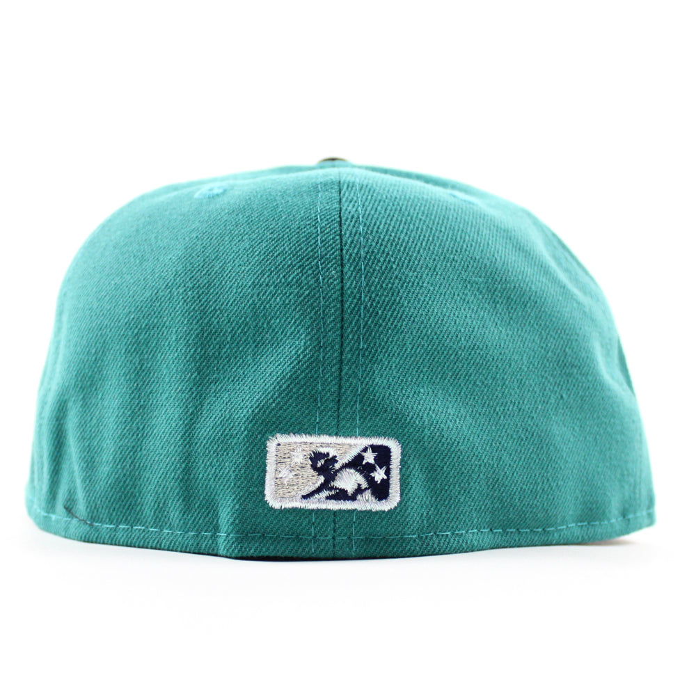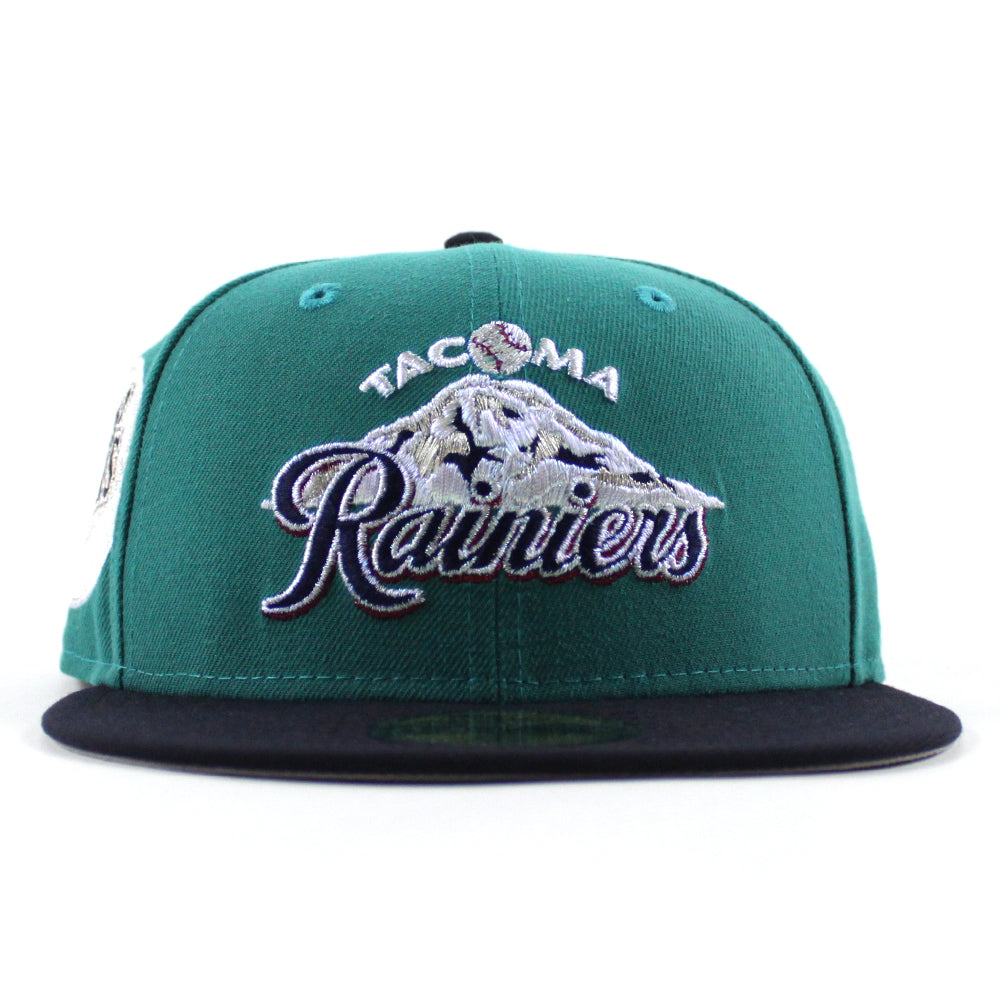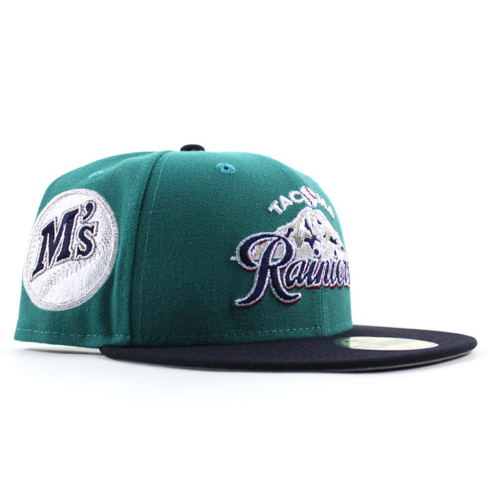 Tacoma Rainiers x Seattle Mariners New Era Fitted 59Fifty Hat in Teal, Navy & Green Gray Under Brim.