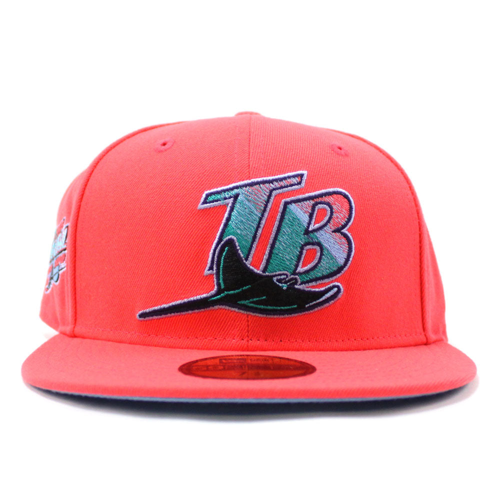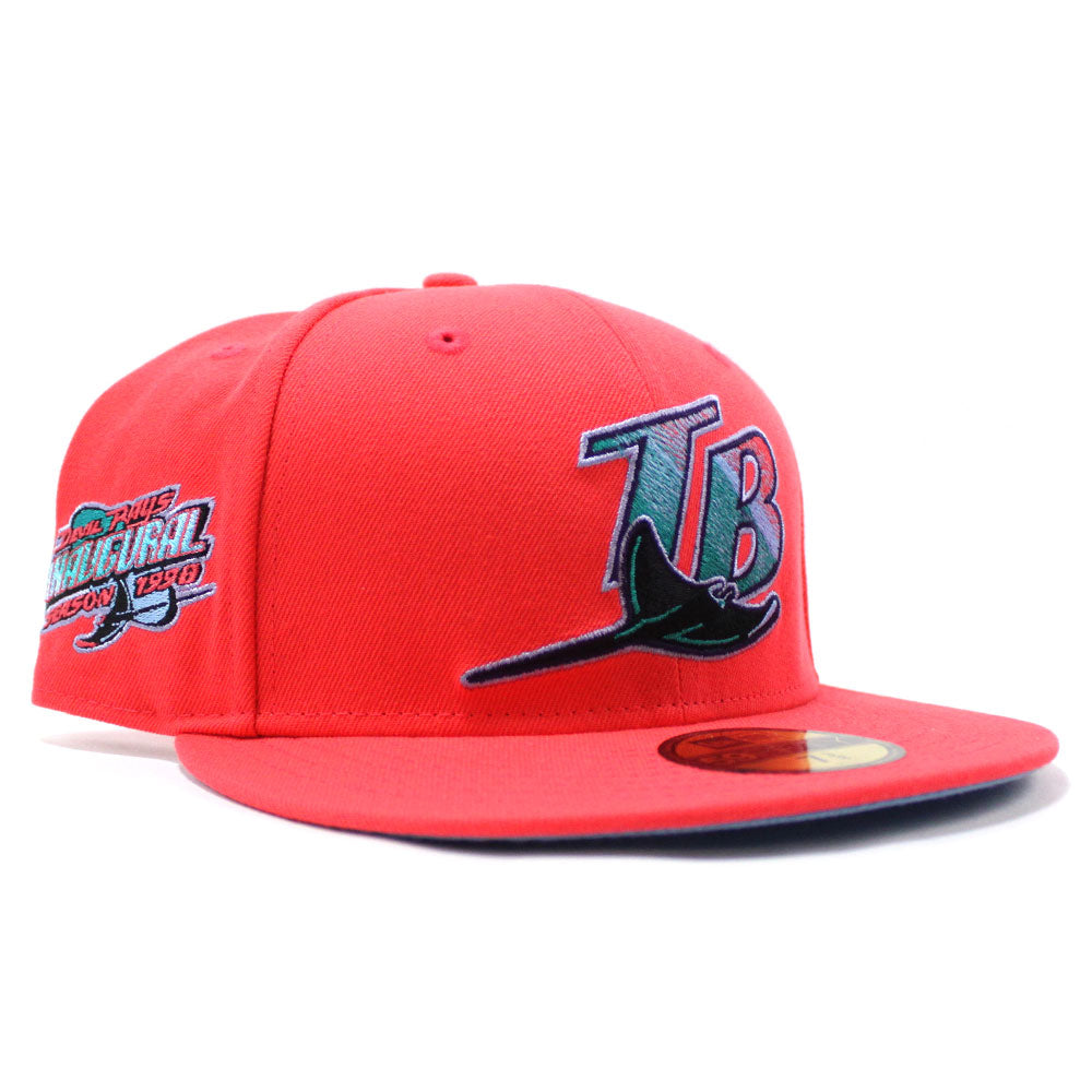 Tampa Bay Devil Rays 1998 Inaugural Season New Era 59Fifty Fitted Hat (Lava Red Sky Blue Under Brim)