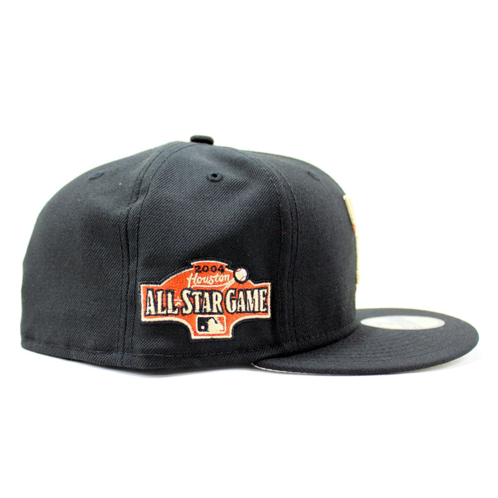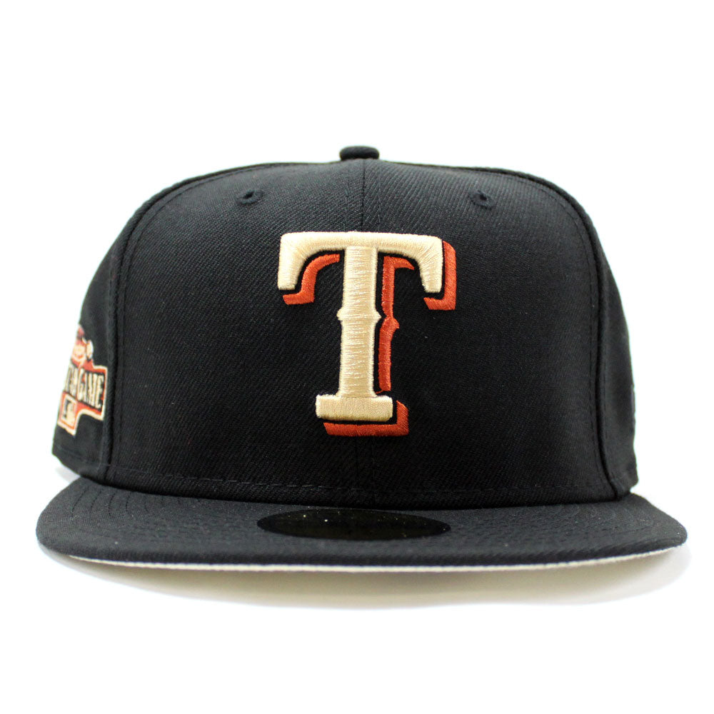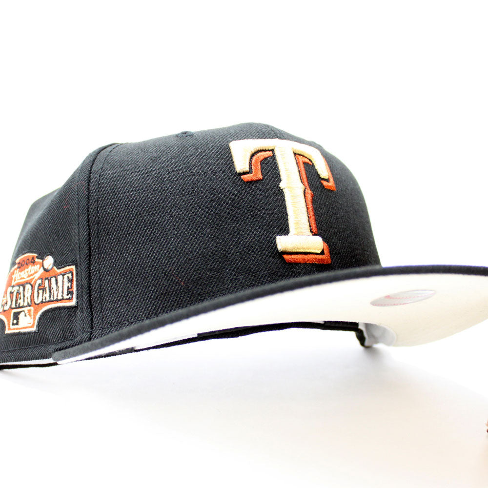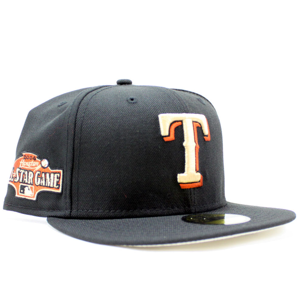 Texas Rangers 2004 All Star Game New Era 59Fifty Fitted Hat in Black and Khaki under brim.