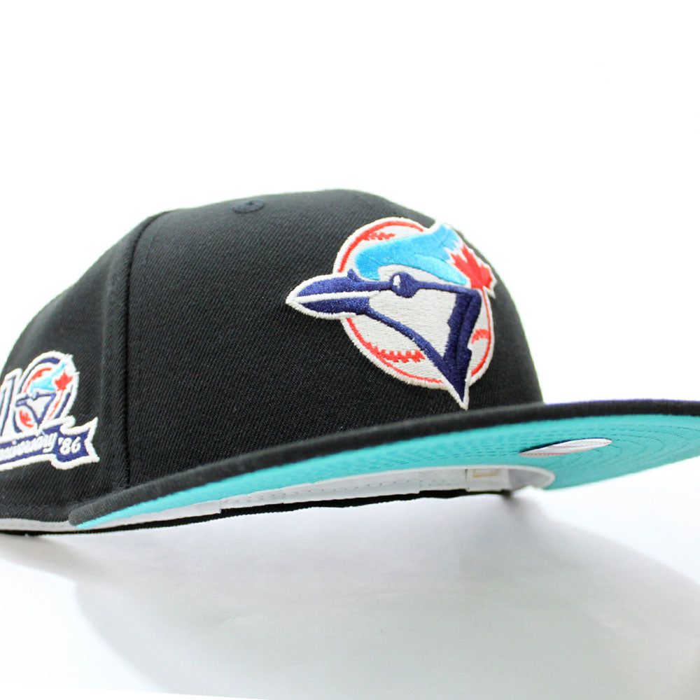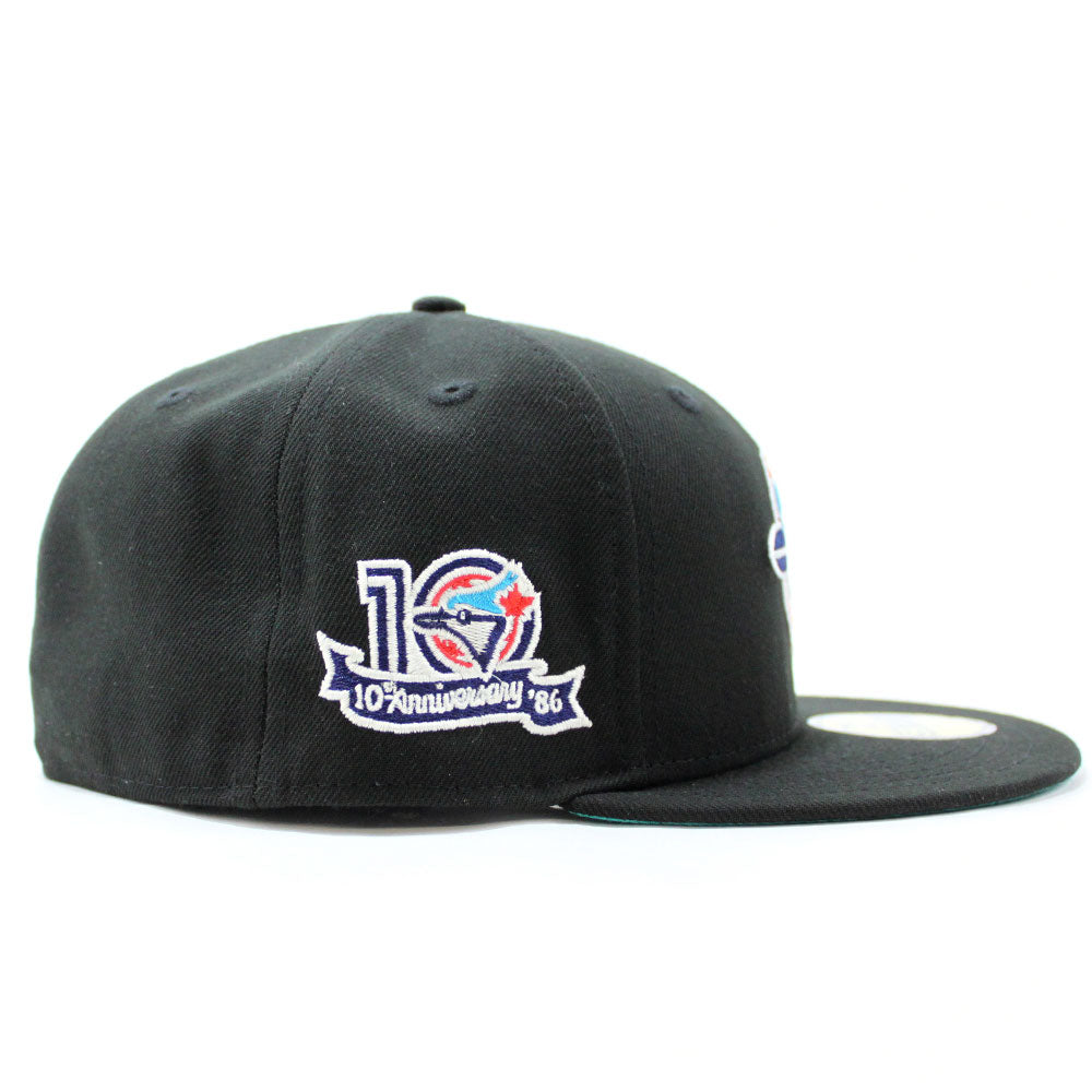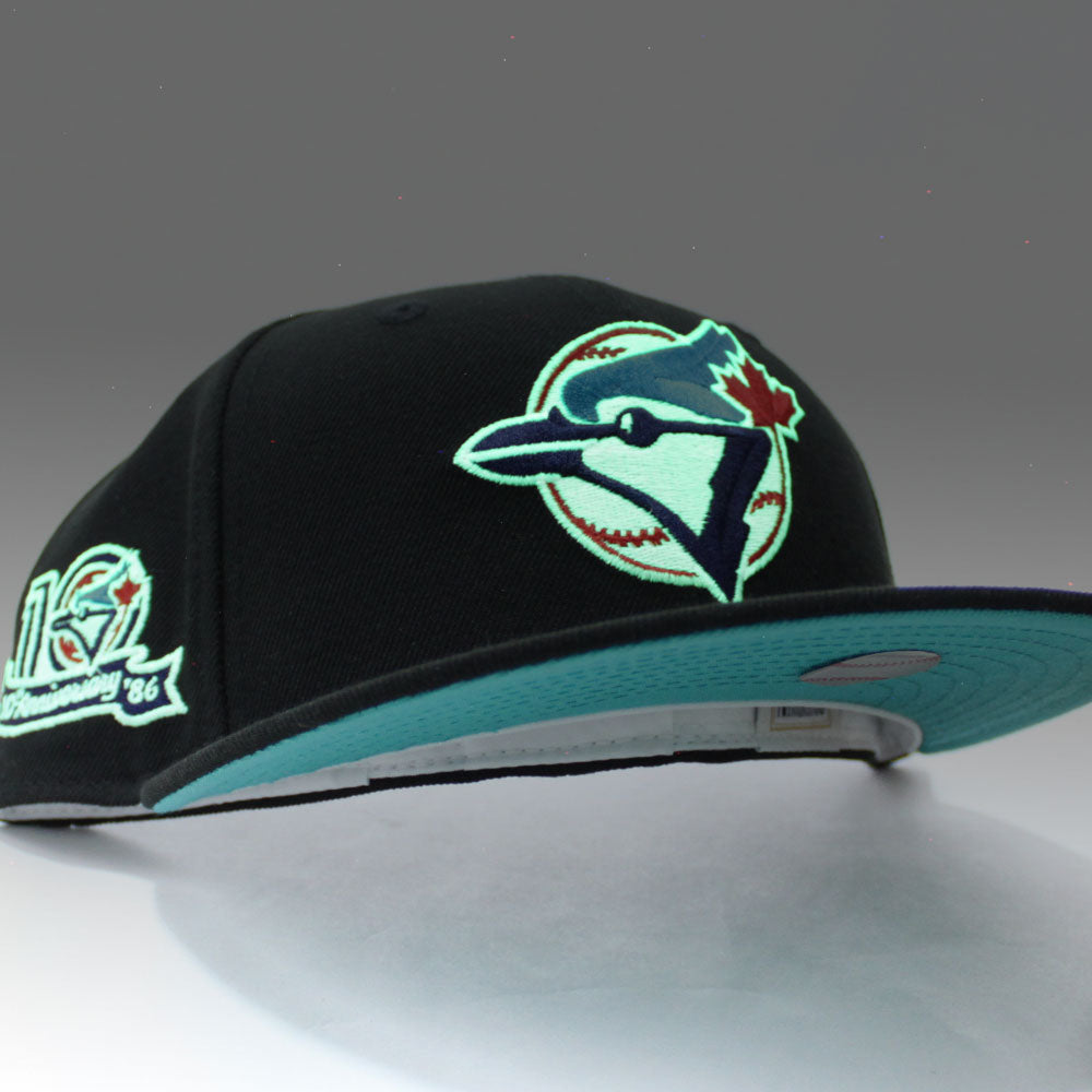 Toronto Blue Jays 10th Anniversary New Era 59Fifty Fitted Hat in Black and Teal Under Brim.