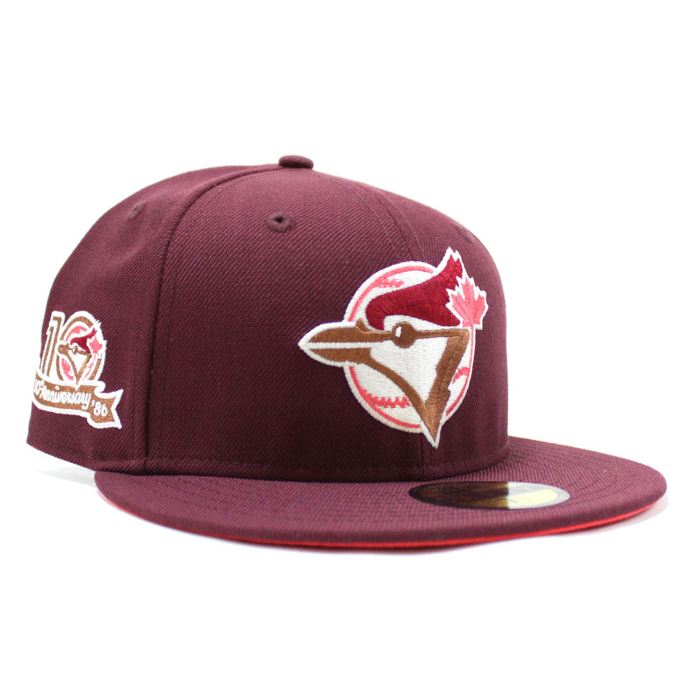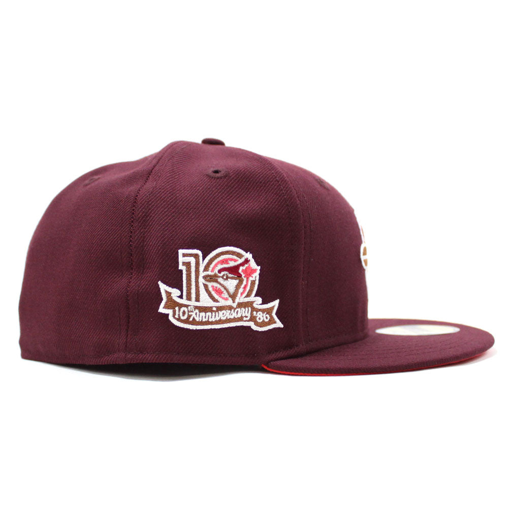 Toronto Blue Jays 10TH Anniversary New Era 59Fifty Fitted Hat in Maroon with Lava Red Under Brim