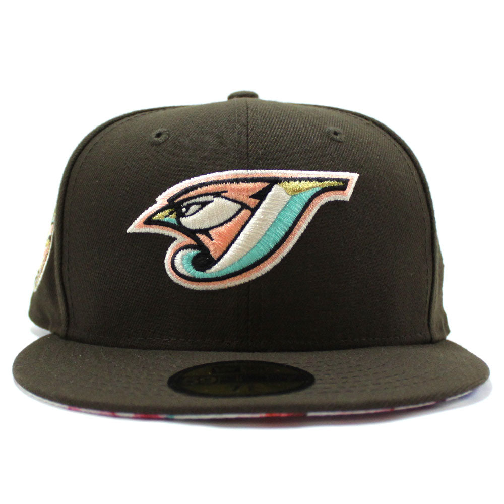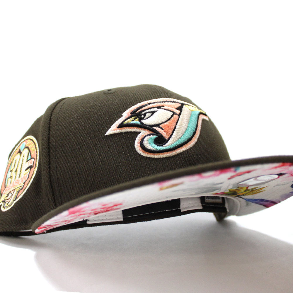 Toronto Blue Jays 30TH Anniversary New Era 59Fifty Fitted Hat in Dark Brown and Floral Under Brim. - Allergy Pack