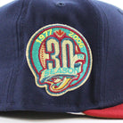 Toronto Blue Jays 30th Season New Era 59Fifty Fitted Hat (OCEANSIDE BLUE PINOT RED TOASTED PEANUT Under Brim)