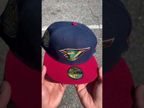 Toronto Blue Jays 30th Season New Era 59Fifty Fitted Cap in OceanSide Blue, Pinot Red and Toasted Peanut Under Brim.
