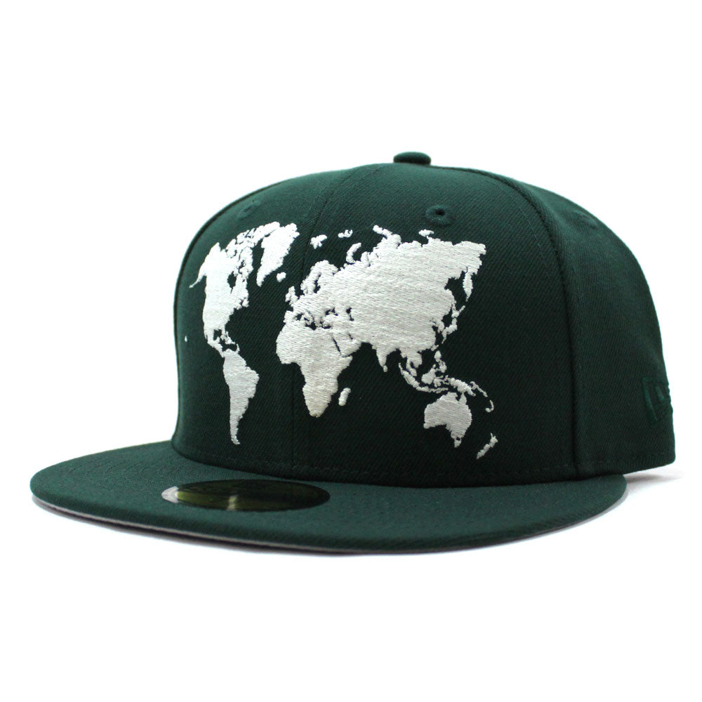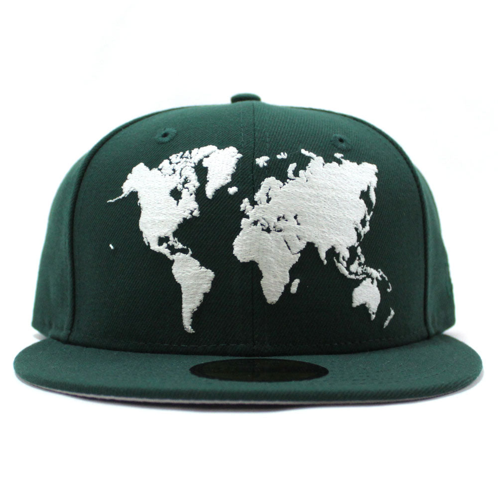 World Wide New Era Fitted Hat (Glow in the Dark Logo Green Gray Under Brim)